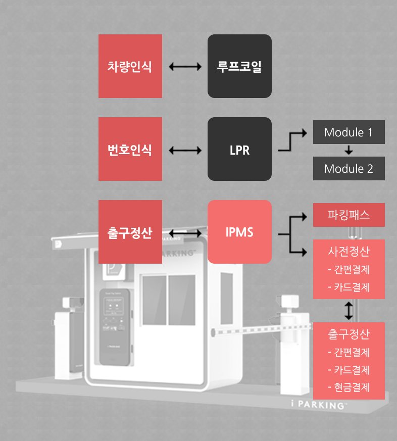 운영방식 | 중앙서버 중심의 주차상품 정보, 빅데이터 연동 | 로컬DB중심의 시간주차 / 월주차 정산 |